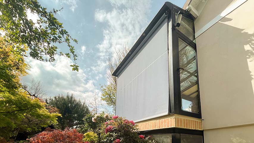 Roller shade with side cable guide. Greater wind and weather stability.
