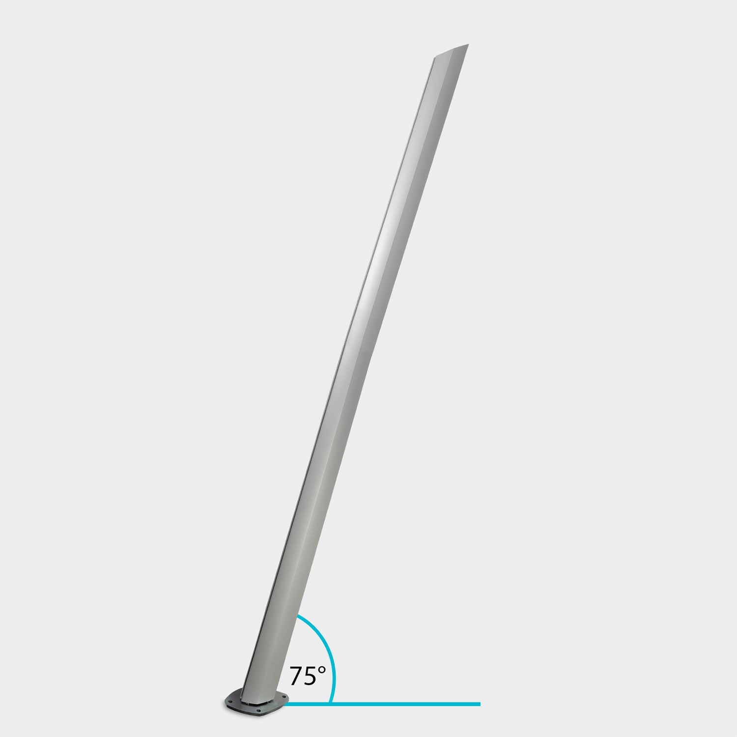 Alu Simple is 9'6" tall and is resistant to strong winds, rust, and salt air. It is designed to last even in areas with particularly harsh weather conditions.