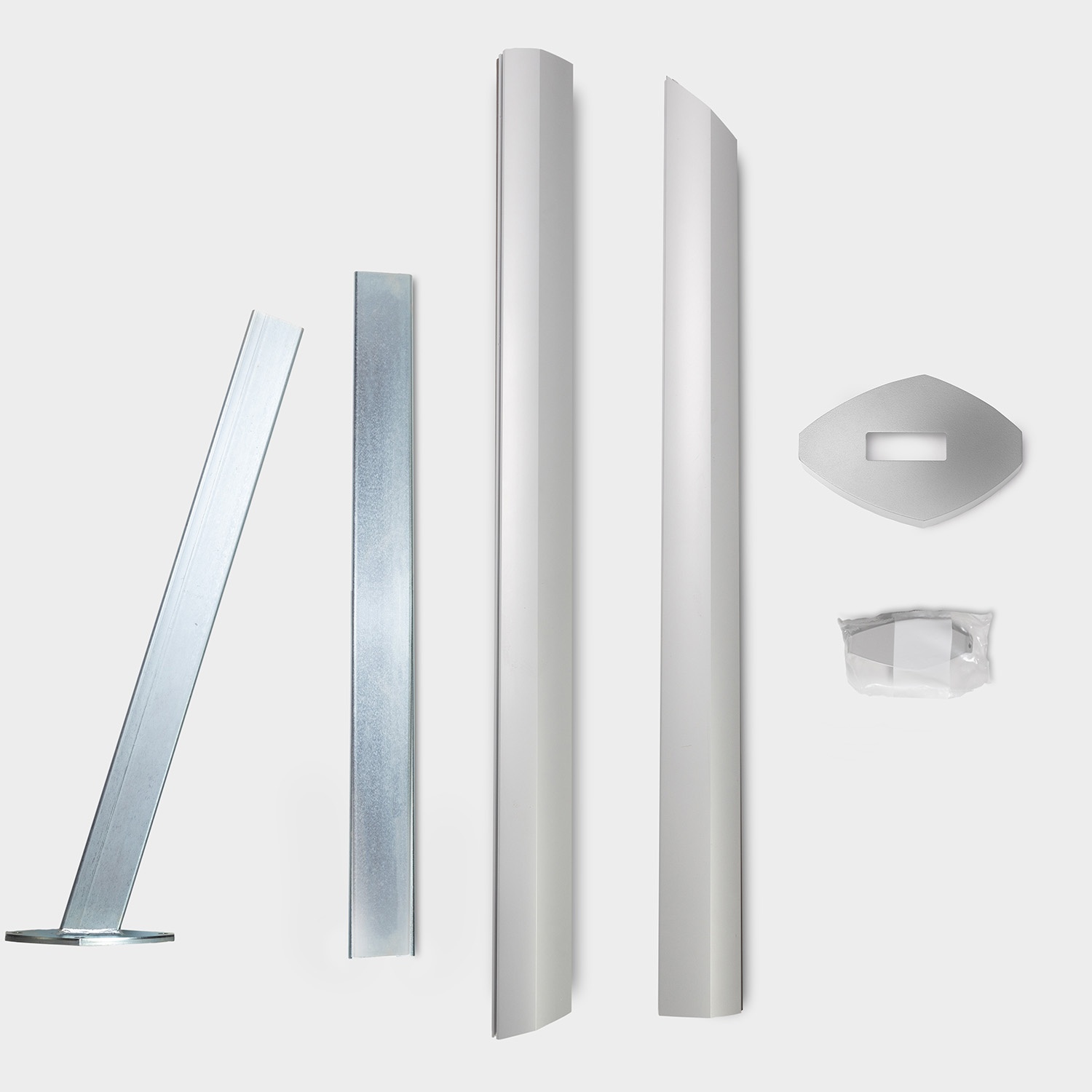 - Included accessories: sturdy ground base or wall collars in steel and Alu Simple Lid, the cover to hide the fixing screws of your pole in the ground