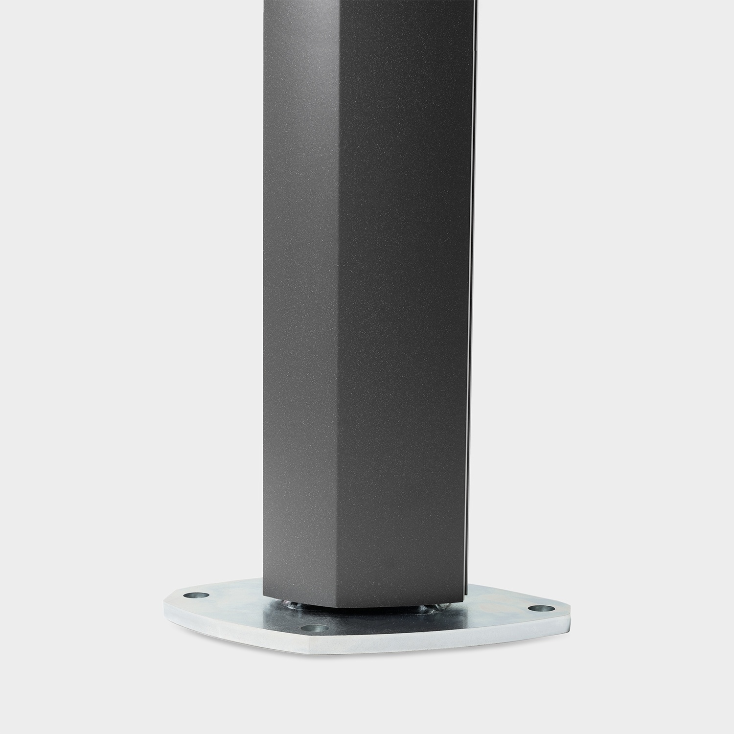 - Included accessories: sturdy ground base or wall collars in steel and Alu Simple Lid, the cover to hide the fixing screws of your pole in the ground