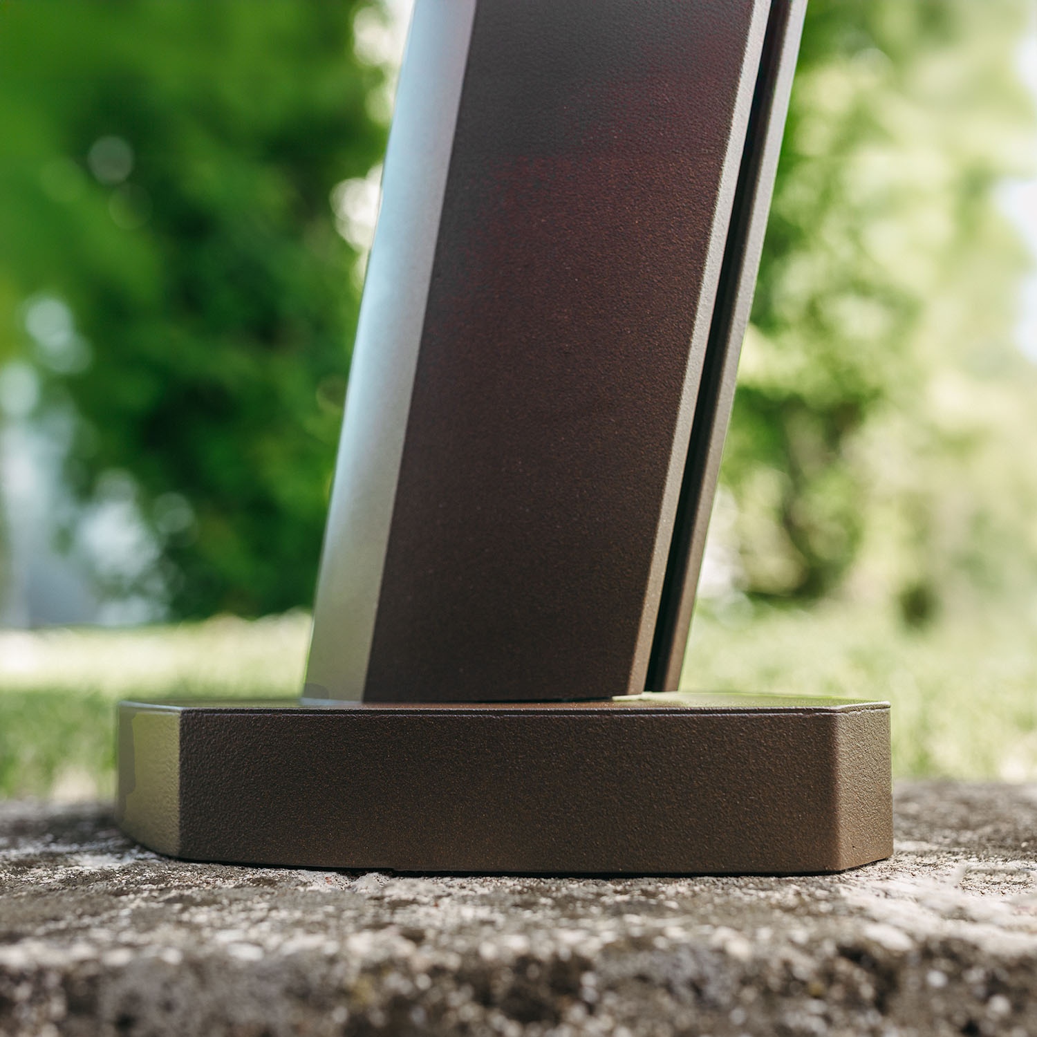 - Included accessories: sturdy ground base or wall collars in steel and Alu Simple Lid, the cover to hide the fixing screws of your pole in the ground