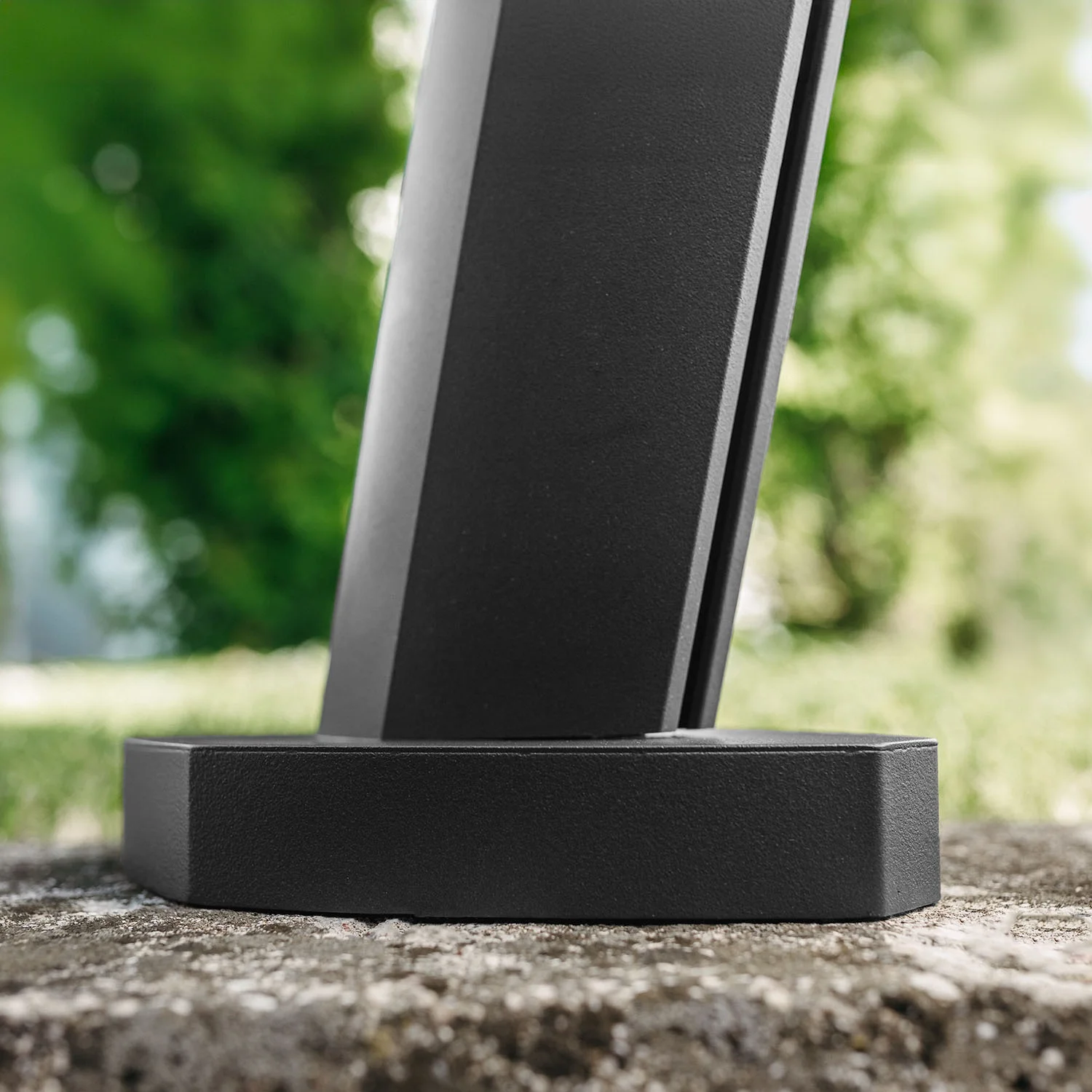 - Included accessories: sturdy ground base or wall collars in steel and Alu Simple Lid, the cover to hide the fixing screws of your pole in the ground
