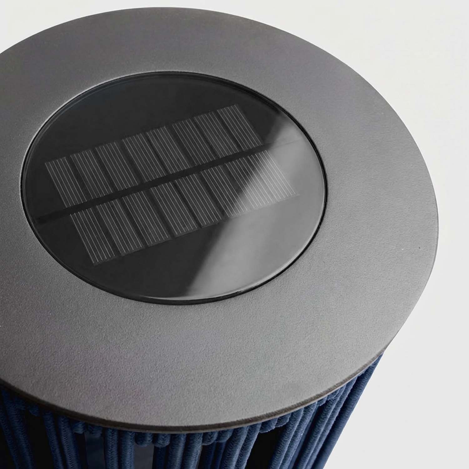 Filara is an outdoor solar table lamp with vertically woven nylon rope.