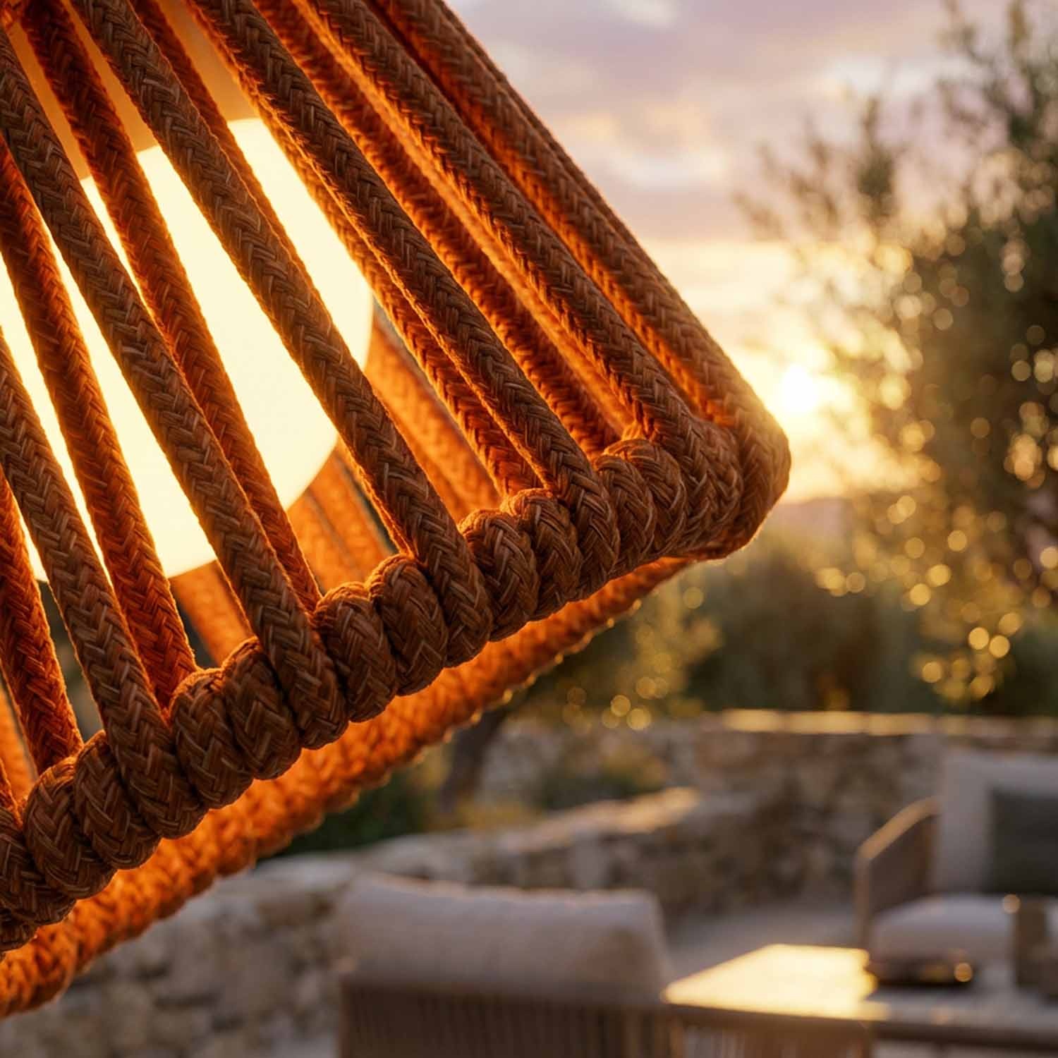 The rope is made of olefin polypropylene, the same material used across Maanta's entire Rope collection. Olefin is water-repellent, stain-resistant, and built to withstand UV rays and harsh weather conditions. It doesn't absorb moisture, won't fade, and holds up beautifully under prolonged sun exposure — perfect for American patios and outdoor spaces. Suitable year-round, indoors and out.