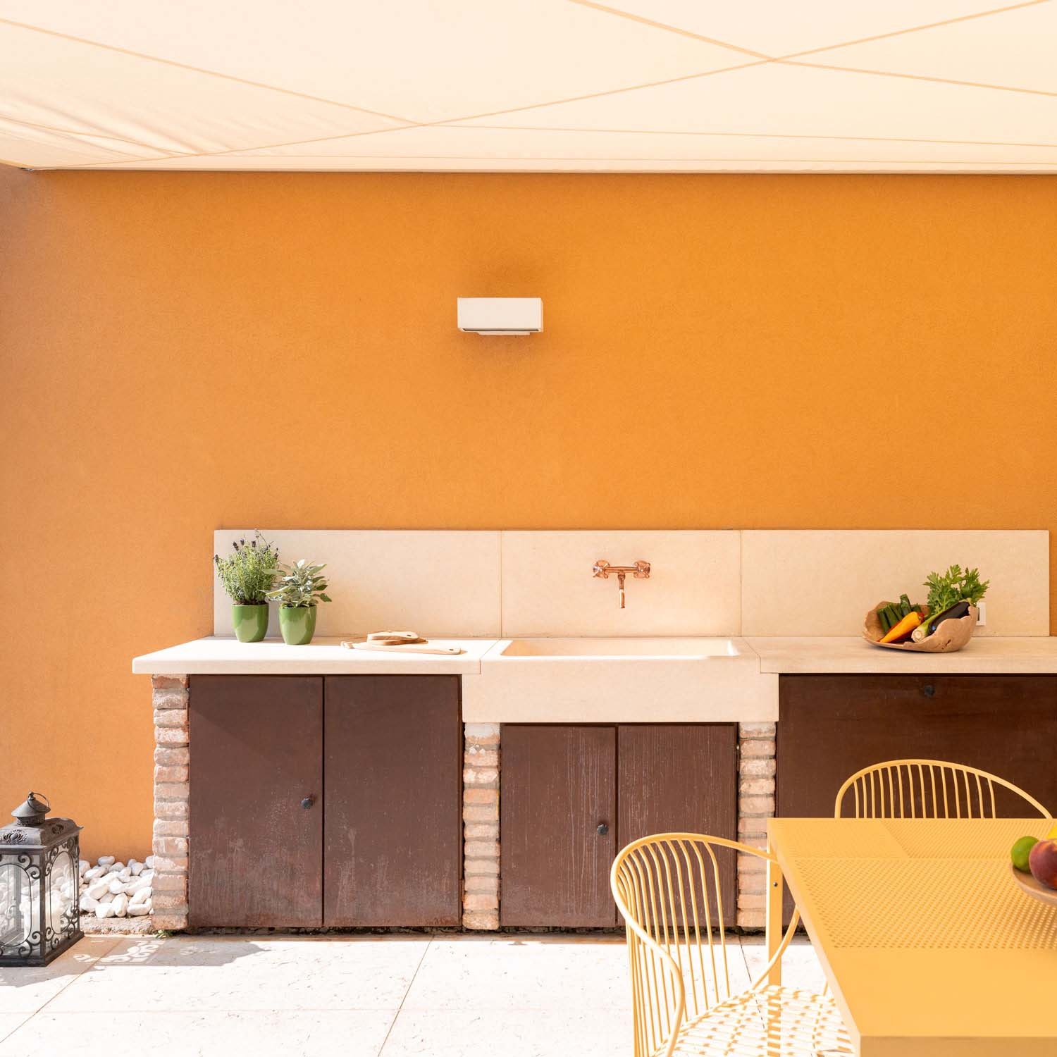 From the need to anchor one side of the sail to the wall of the house, Solaria Lean was born.