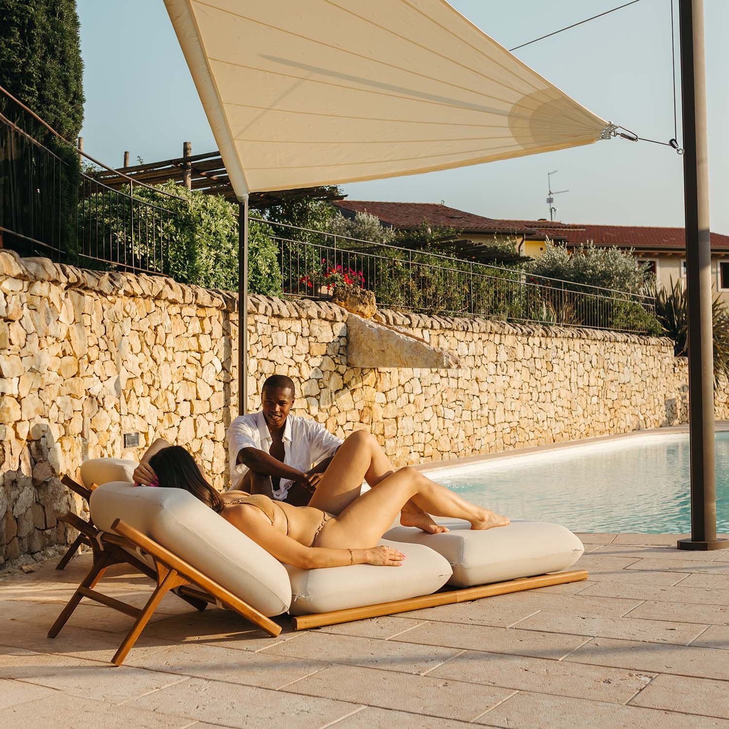 This electric sun shade for patio requires poles specially designed by Maanta, equipped with mounting plates compatible with its motorized connection system. If you're using different poles, they unfortunately won’t work with Zefira.