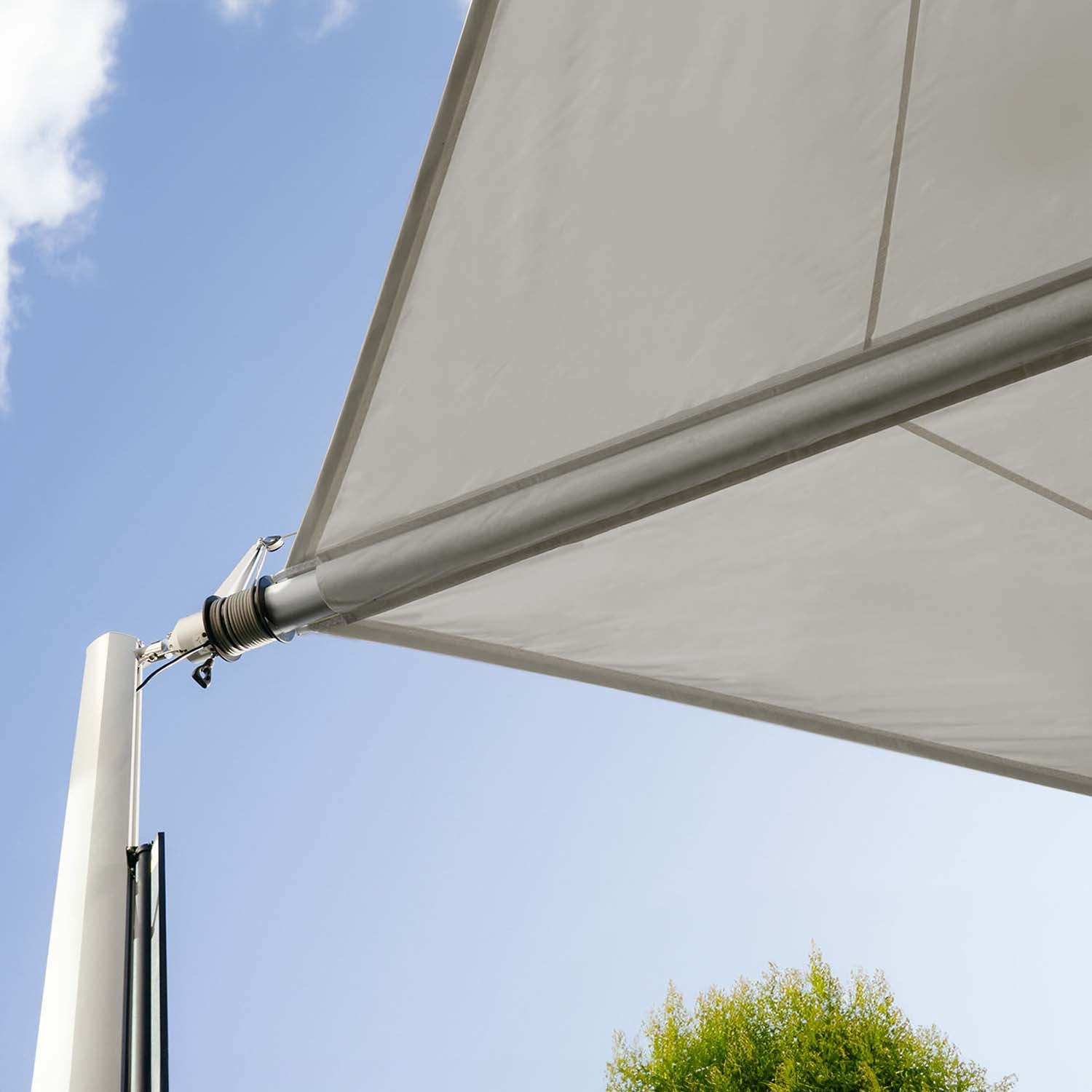 | Included tensioning system components | Spring unit, rope winding pulley, corner pulleys on the shade sail, tensioning rope, cantilever bracket |