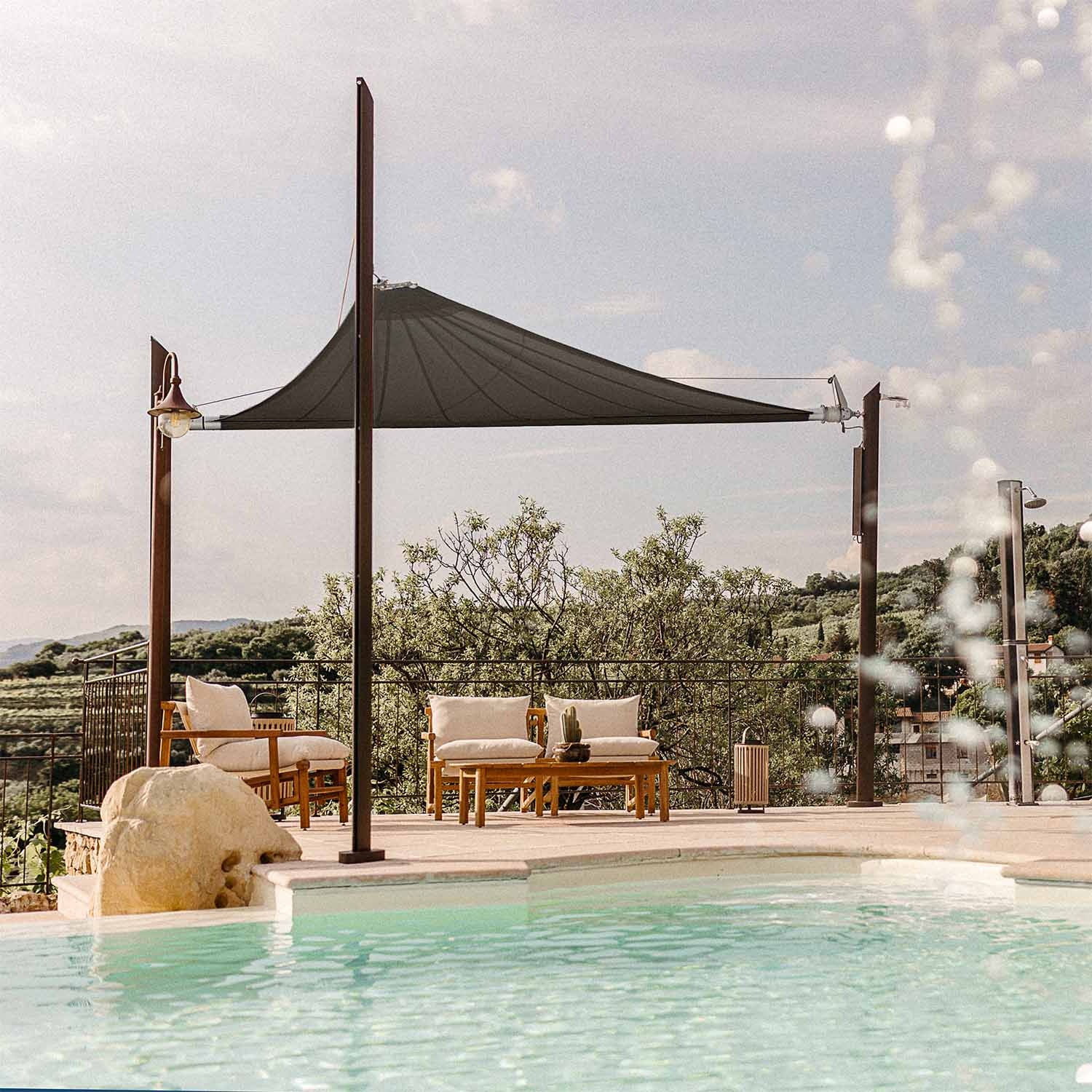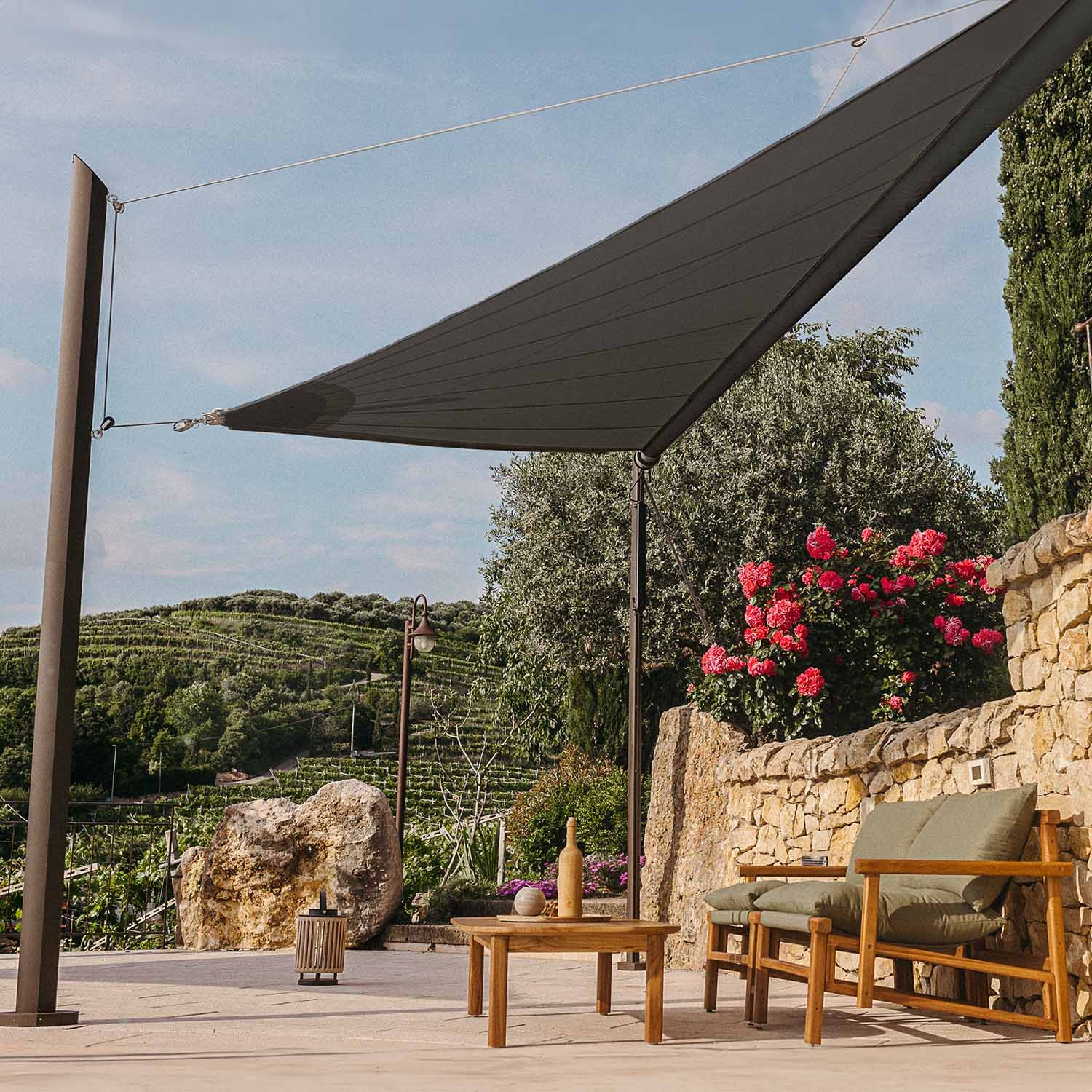 This electric sun shade for patio requires poles specially designed by Maanta, equipped with mounting plates compatible with its motorized connection system. If you're using different poles, they unfortunately won’t work with Zefira.