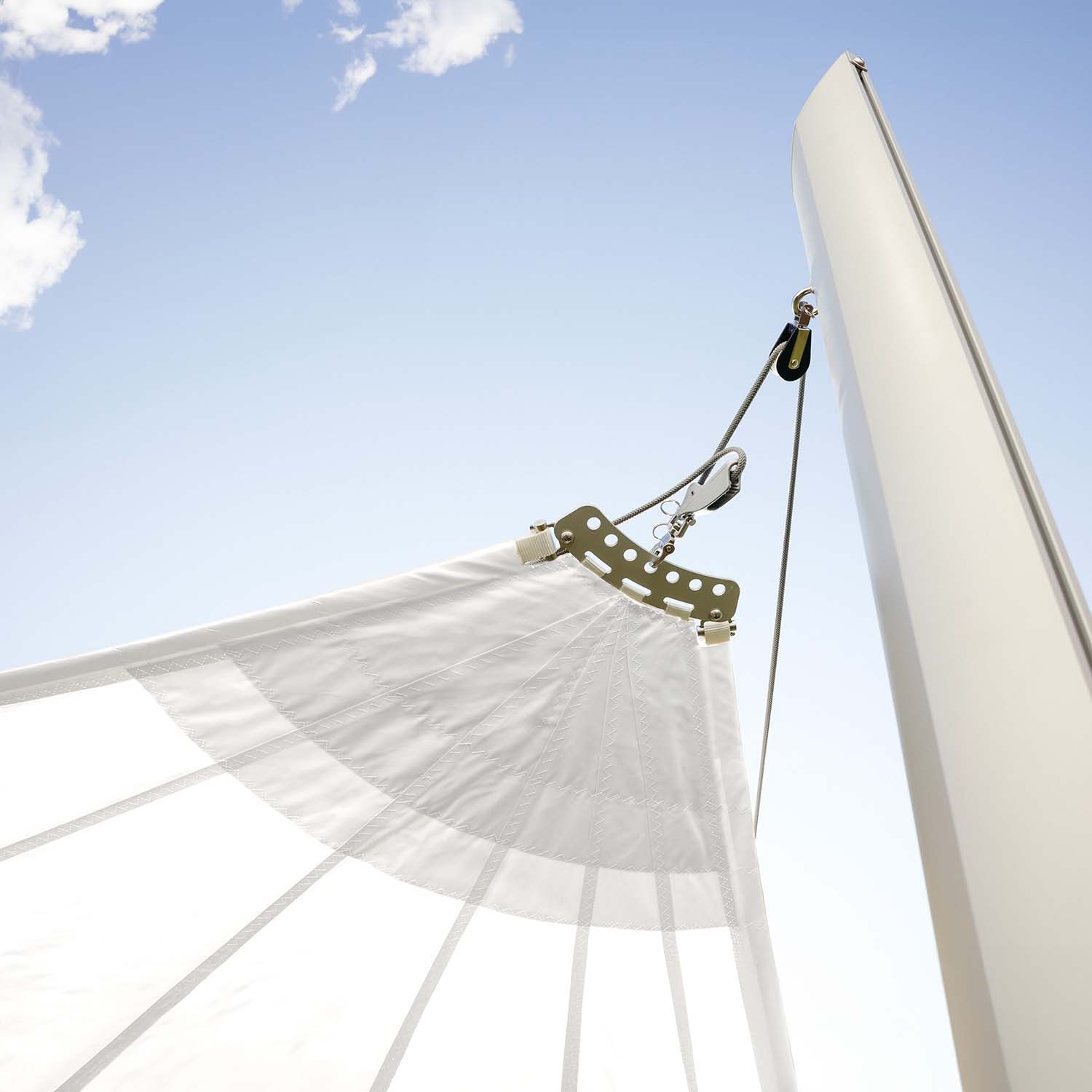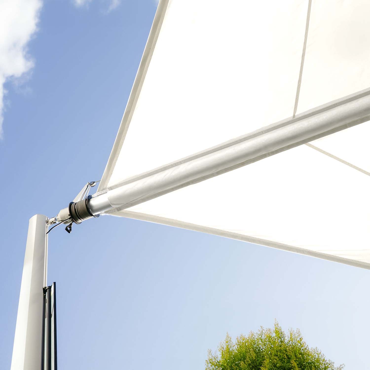 | Included tensioning system components | Spring unit, rope winding pulley, corner pulleys on the shade sail, tensioning rope, cantilever bracket |