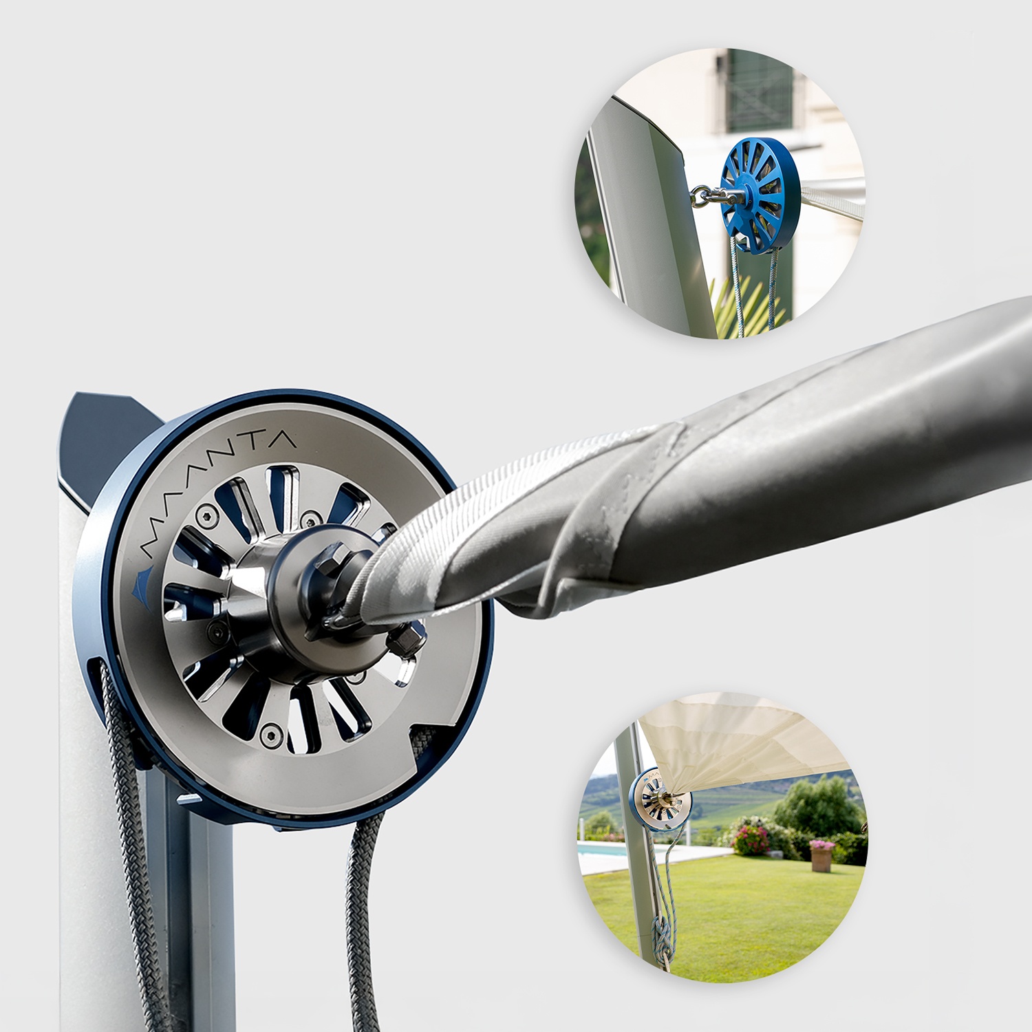 Designed in Italy by the Maanta crew after analysis and months of testing, taking into consideration the specific needs of shade sails, this unique furler is machined from a solid block of aluminum, giving it a modern design and optimizing performance.