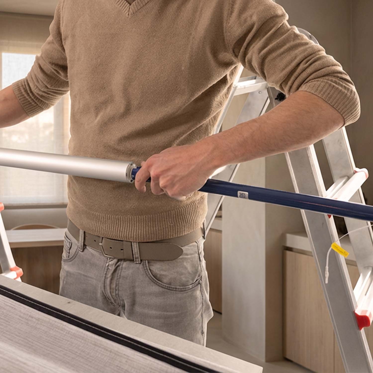 The Maanta roller shade motor installs directly onto the winding shaft in just a few minutes, with no electrician and no wall work required.