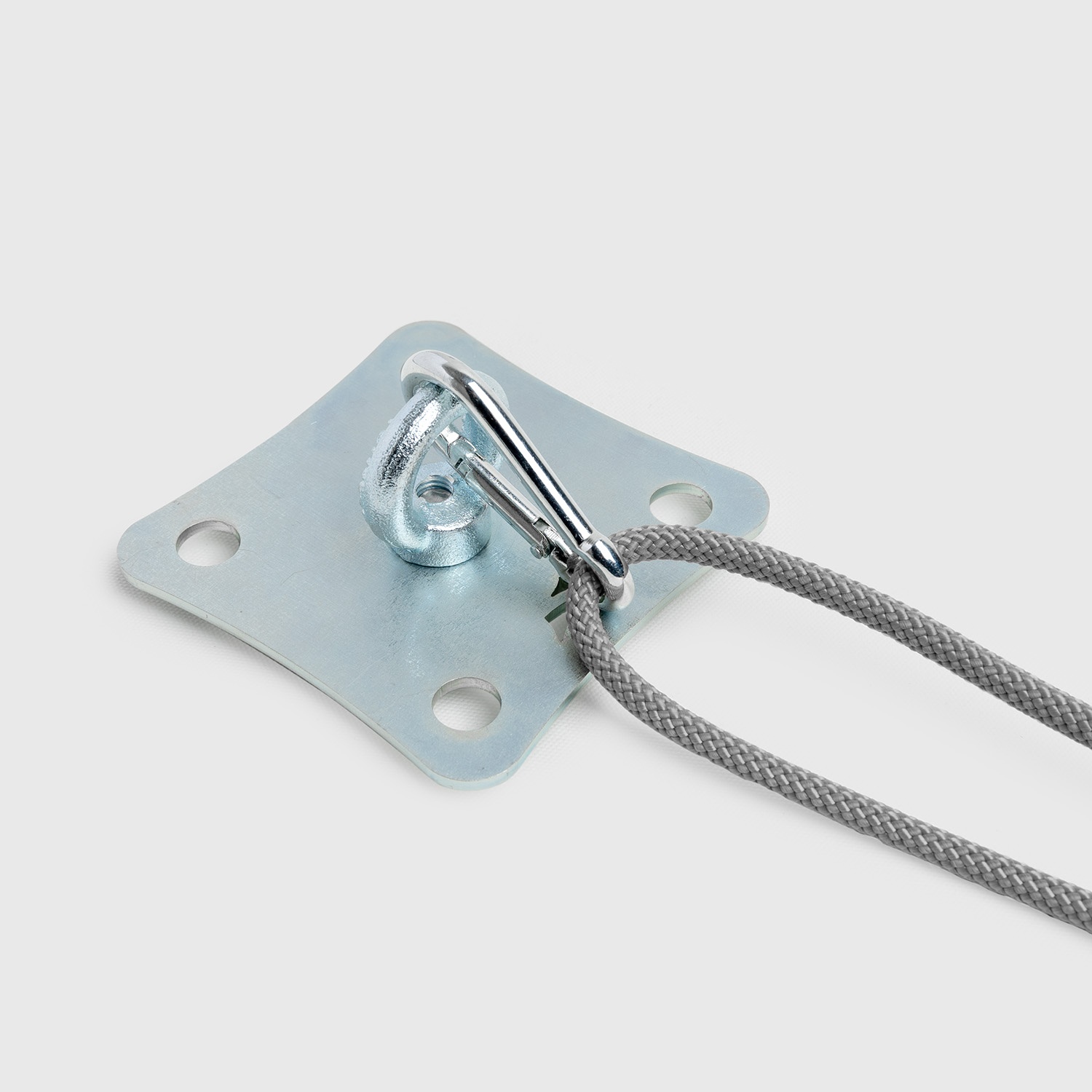 - Complete kit: robust 4" x 4" square plate in galvanized or stainless steel, 2 carabiners in galvanized or stainless steel, U-bolt (to adjust the length), 6 1/2 feet of nautical rope (choose kits that include threaded rods and chemical anchor)