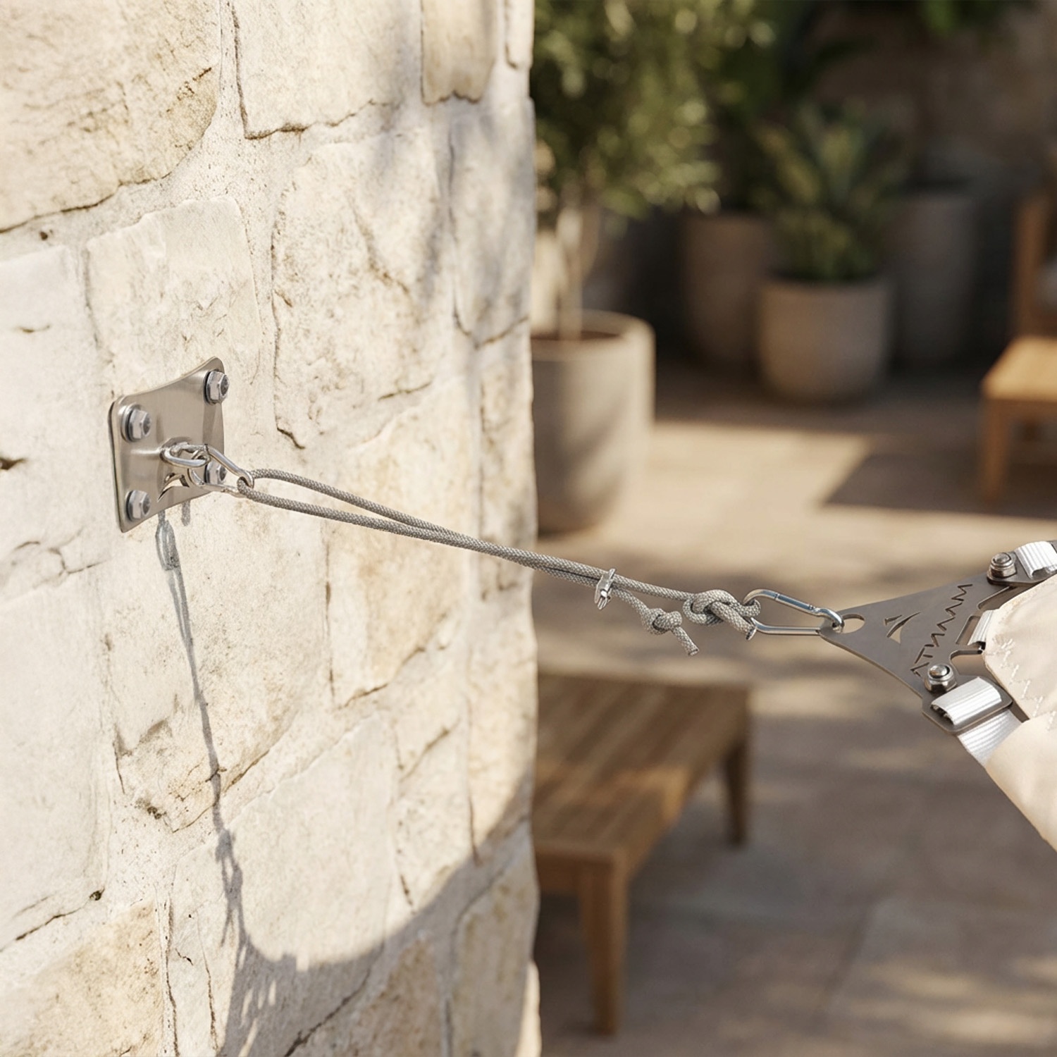 The Wall Kit with nautical rope is a system designed to secure shade sails. Made with a high-quality nautical rope, it allows you to connect your sail to an anchor point up to 6 1/2 feet away.